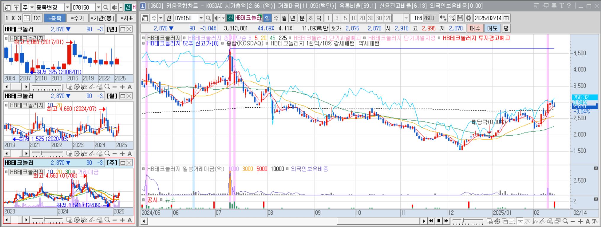 대장주이지만 시총이 6조로 다소 커서 변동성이 적음.
