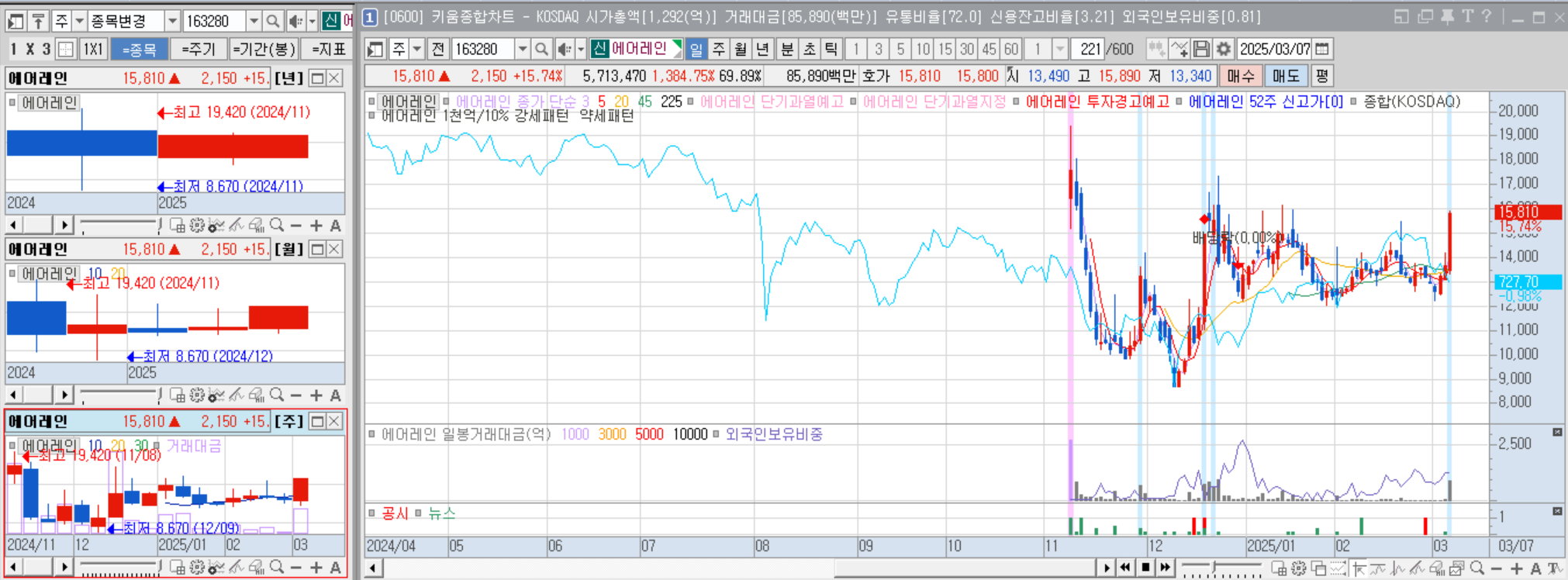 25년 3월 7일 15.74% 상승. 뉴스기사로 올린 듯.